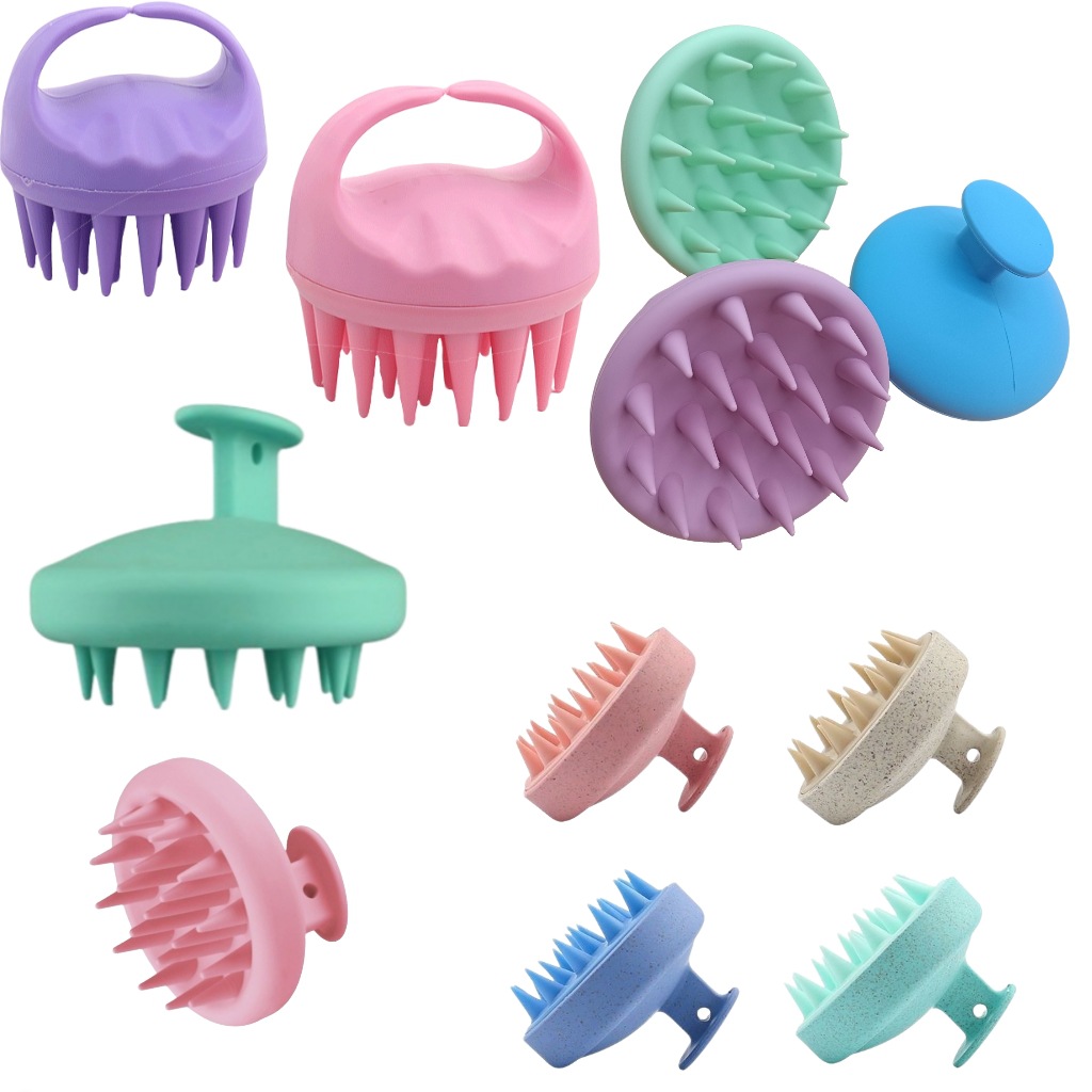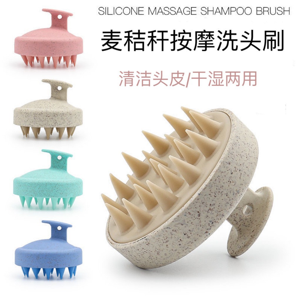 -               热销麦秸秆洗头刷环保可降解柔软头皮按摩刷子清洁去屑硅胶洗头刷