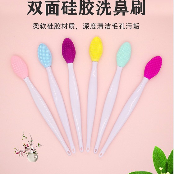 -               跨境洗鼻刷硅胶双面鼻头刷唇刷黑头清洁洁面刷粉刺刷美妆工具