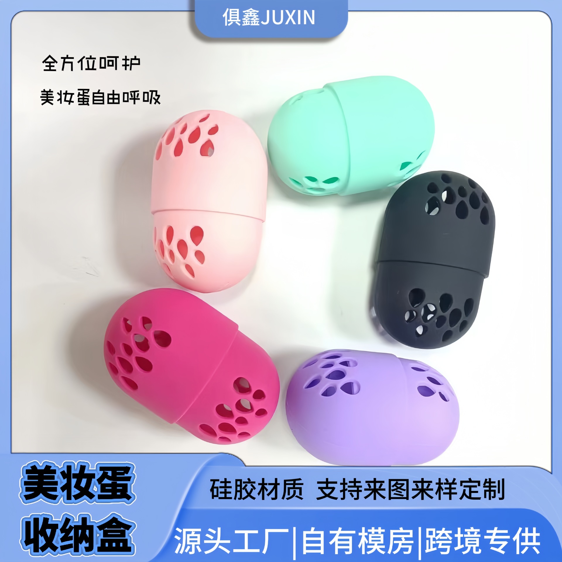 -               爆款硅胶美妆蛋收纳盒粉扑晾晒专用防尘美妆收纳透气工具工厂批发