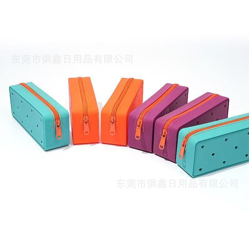 -               硅胶洞洞笔袋学生大容量文具盒文具收纳爱心镂空笔袋厂家批发定制