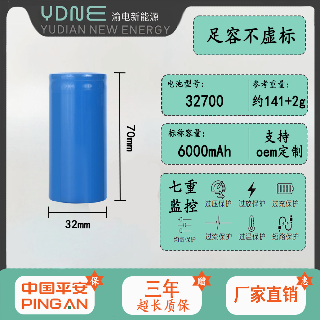 加工定制江西渝电 32700磷酸铁锂电池3.2V6000mAh全新A品储能路灯