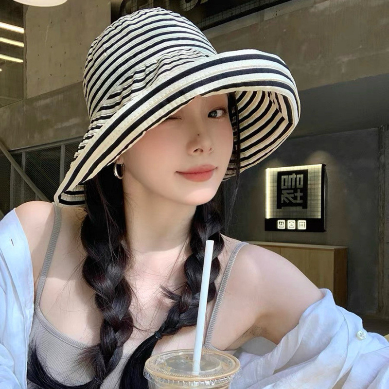 大帽檐遮脸渔夫帽女夏天遮阳帽韩版百搭户外出游防晒太阳帽子
