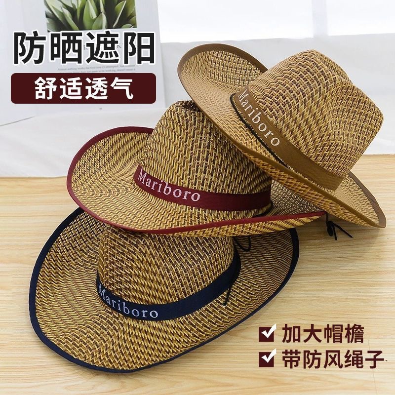 骑士防晒帽大帽檐草帽墨西哥草编帽遮阳帽牛仔户外男士外贸出口