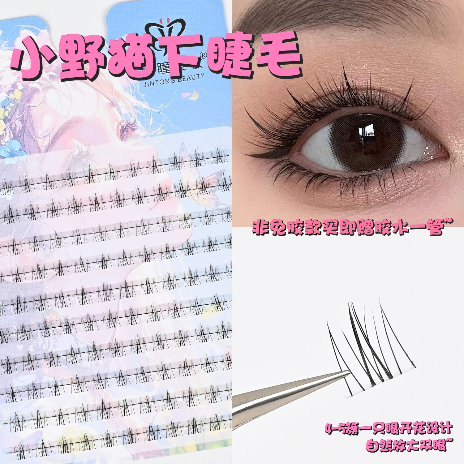 10排大容量懒人免胶小野猫下睫毛假睫毛自然仿真妈生纤长分段睫毛