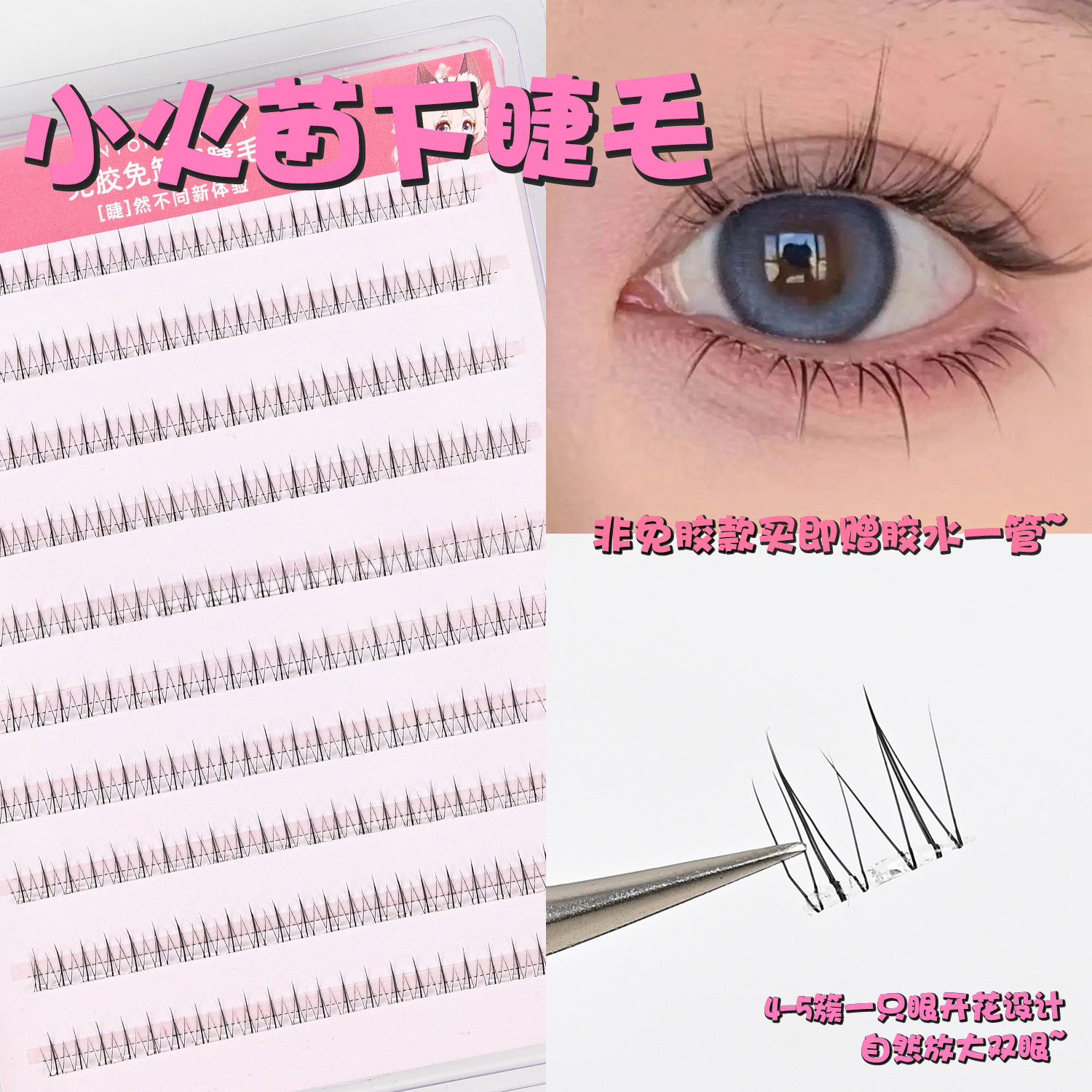 10排大容量懒人免胶小火苗下睫毛自然仿真漫画款透明梗假睫毛