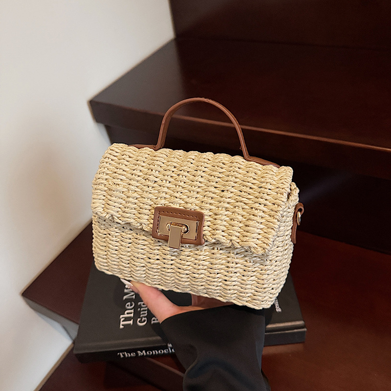 2025法式复古手工编织斜挎包旅游度假小方包休闲个性手拎草编女包