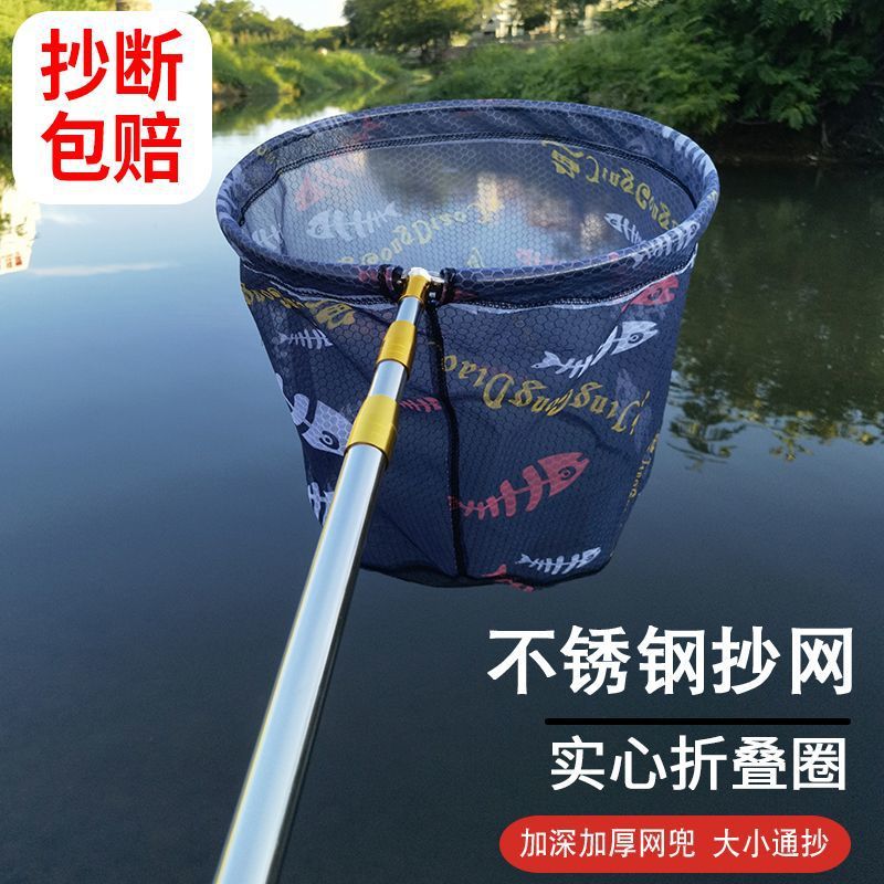 不锈钢抄网纳米网布伸缩杆加深加密捞鱼网兜钓鱼抄网一套捞网渔具
