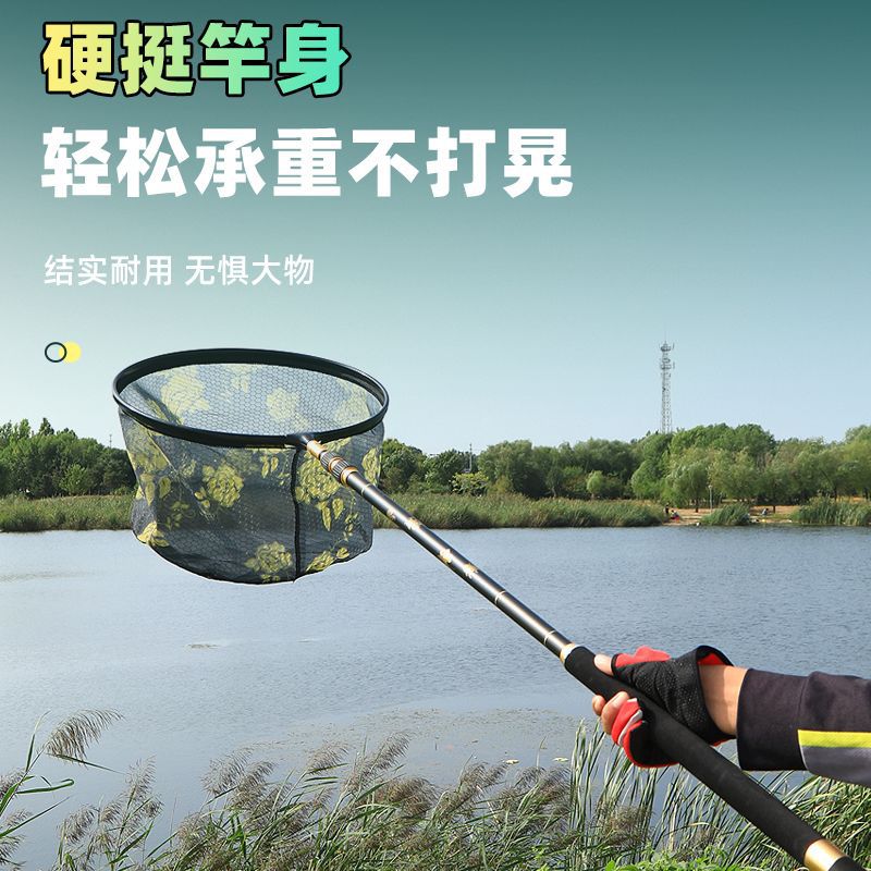 黑金碳素抄网杆超轻超硬碳素抄网竿鲢鳙大物竿巨物抄网2.1米飞抄