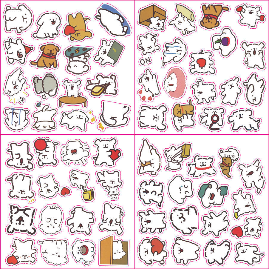 新款不干胶贴纸书包学生手账贴画手机壳防水贴纸可爱线条小狗贴纸