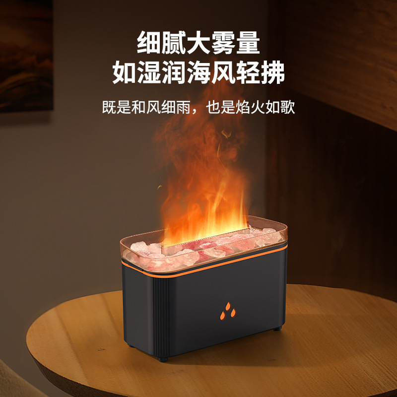 跨境新款盐灯香薰机喜马拉雅盐石负离子桌面空气加湿仿真火焰家用
