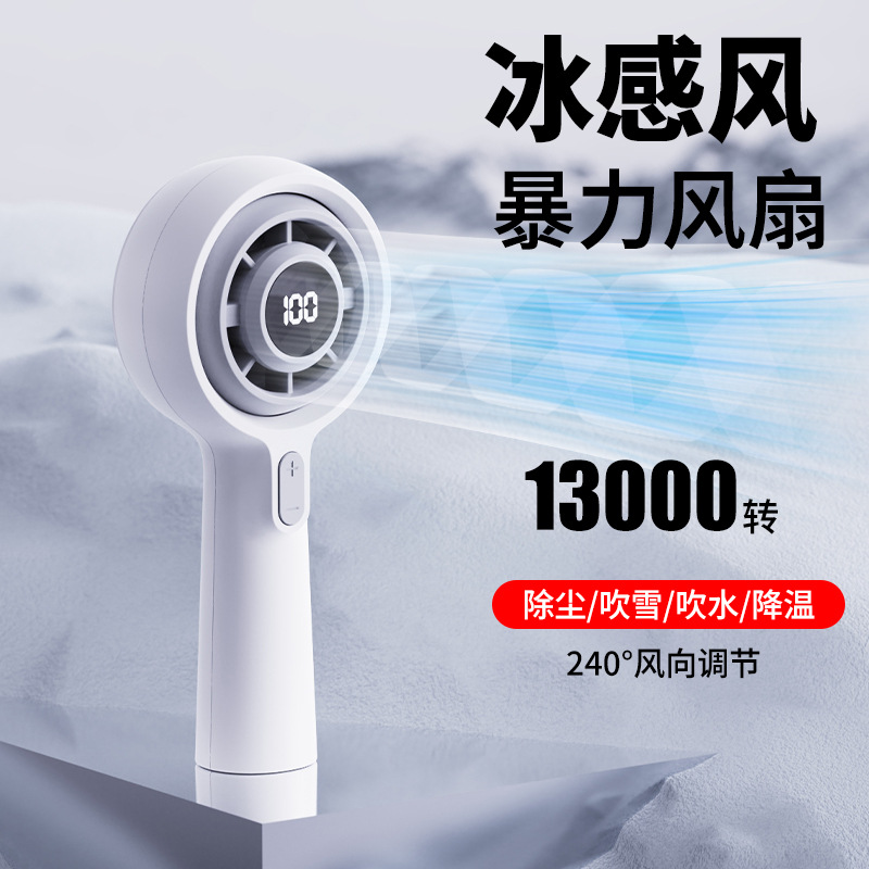 暴力涡轮高速制冷数显100手持风扇USB充电迷你小风扇多档调节礼品