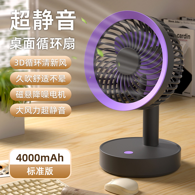 桌面循环充电风扇家用办公便携式摇头扇学生宿舍台式自动摇头风扇