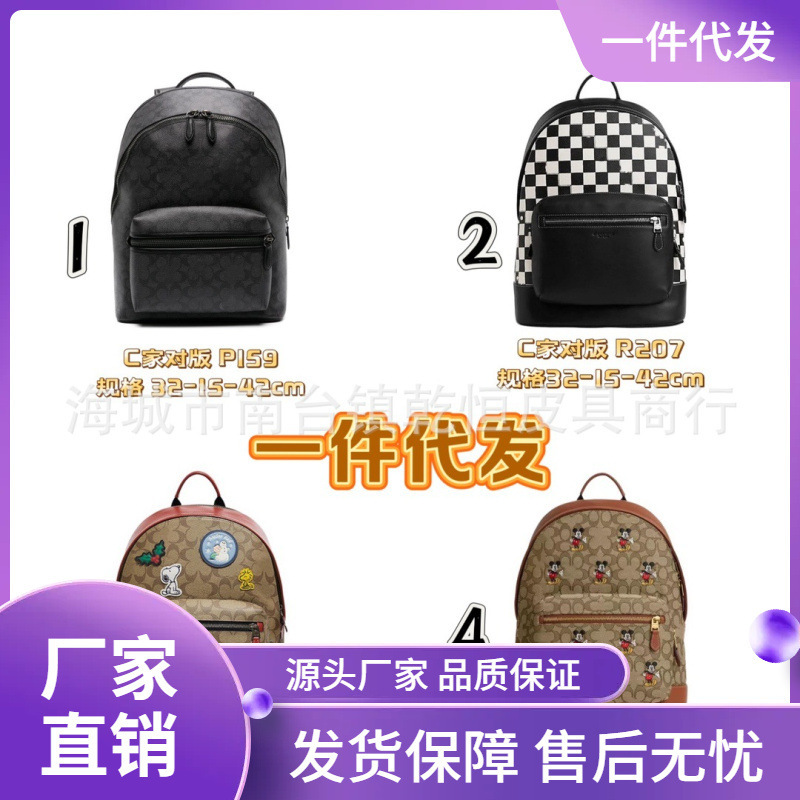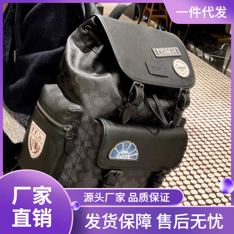 新款男士C家翻盖双肩包 登山包背包 经典老花款头层牛皮超大容量