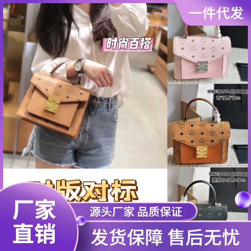 MC家2024新款经典印花单肩包复古感邮差包腋下风琴包链条女包
