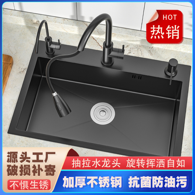 不锈钢黑纳米水大单手工加厚厨房台下盆洗菜盆洗碗池套装