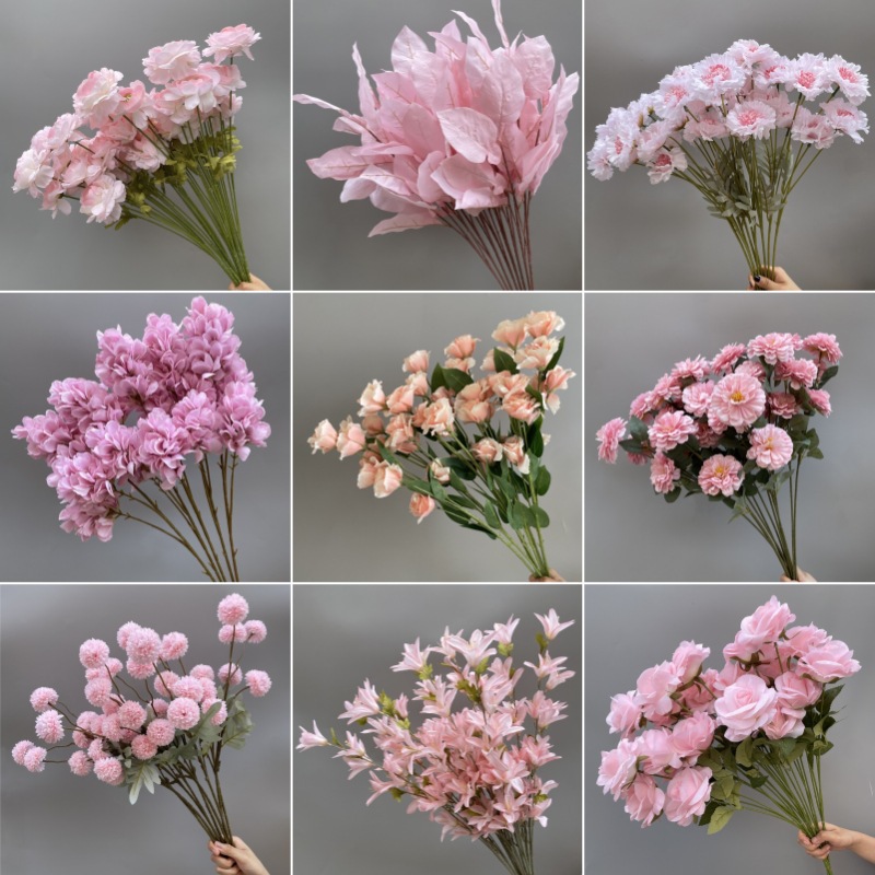 粉色系仿真花婚庆玫瑰洋牡丹装饰花材婚礼堂舞台背景布置插花沐白