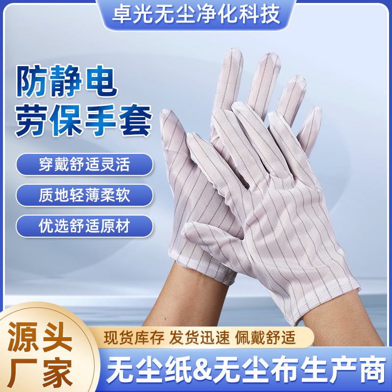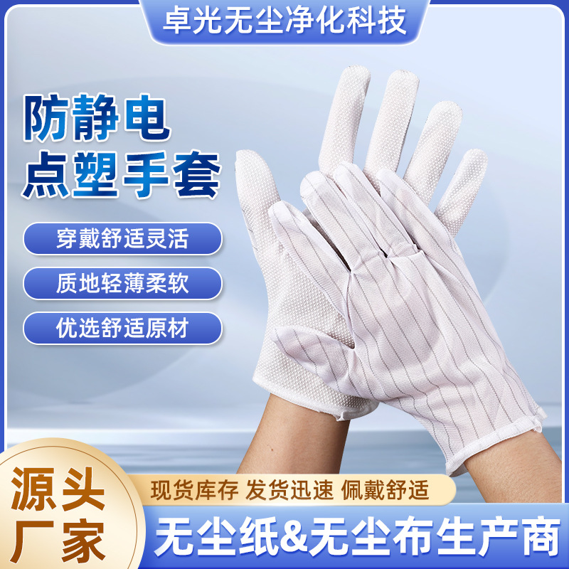 防静电手套条纹点胶点塑防滑耐磨劳保工作业防护薄款无尘电子工厂