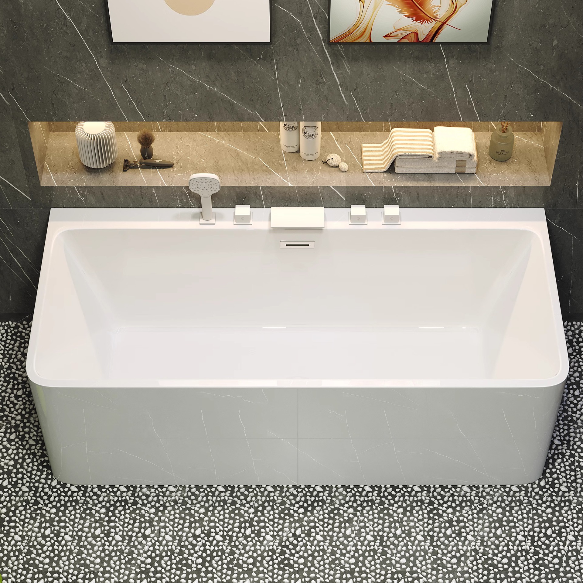 -               亚克力家用恒温冲浪按摩浴缸K1709T小户型独立式三群边长方形浴盆