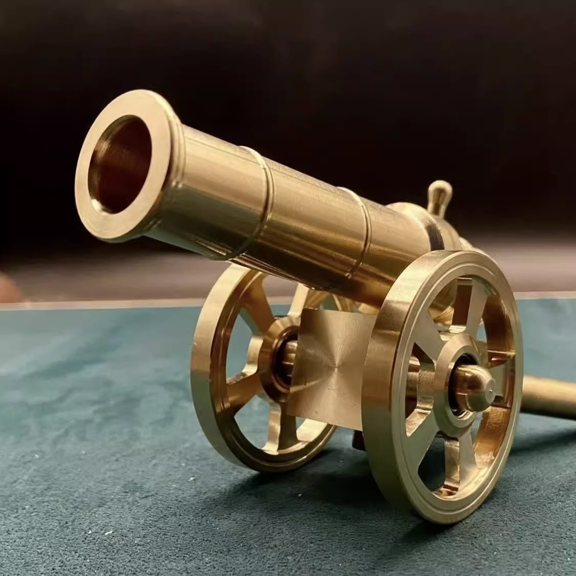 -               纯黄铜大炮摆件模型意大利炮铜开业礼炮把件可放炮火炮金属车铜炮