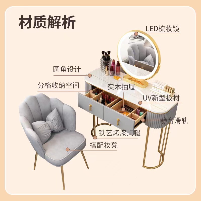 -               梳妆台卧室简约现代化妆桌ins风化妆台烤漆小户型简易妆