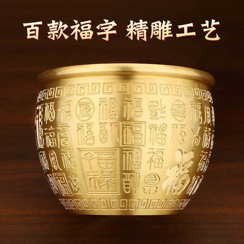 -               聚宝盆摆件招财聚财纯铜生财客厅百福铜缸铜制工艺品黄铜聚福礼品
