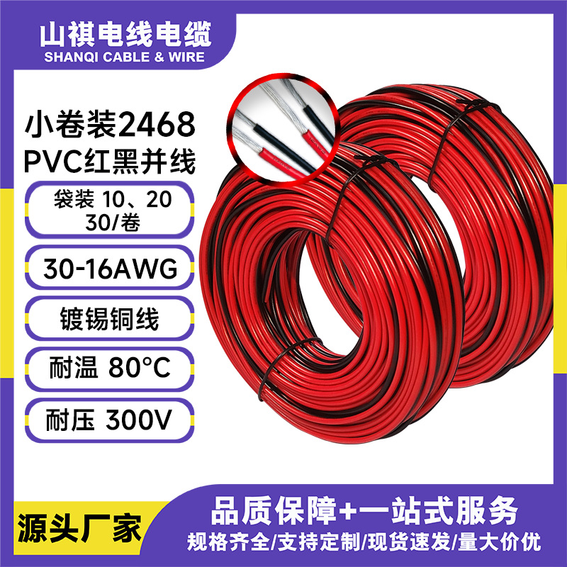跨境直供小卷装2468PVC红黑双并线30-16AWG2芯平行线双排线LED线