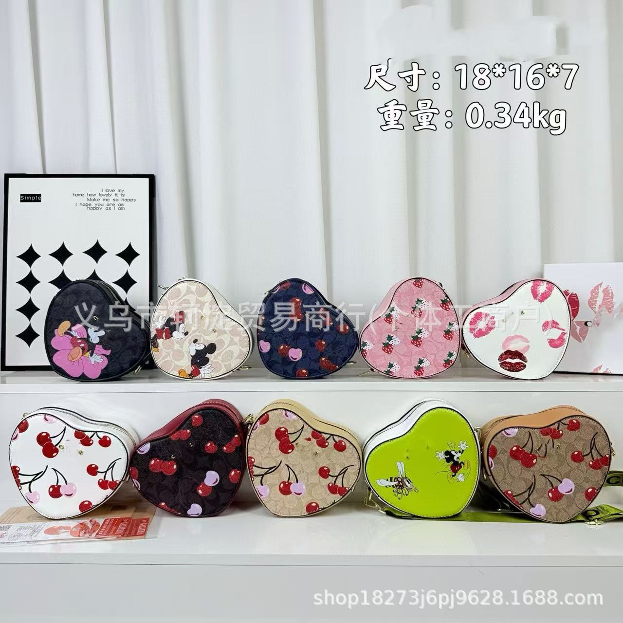 欧美跨境时尚爱心包2025C家经典卡通涂鸦斜挎包休闲百搭单肩包