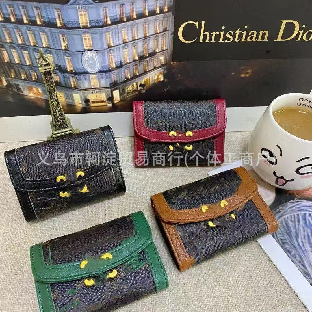 2025新款女士小卡包包新款复古老花钱包撞色设计实用又好看