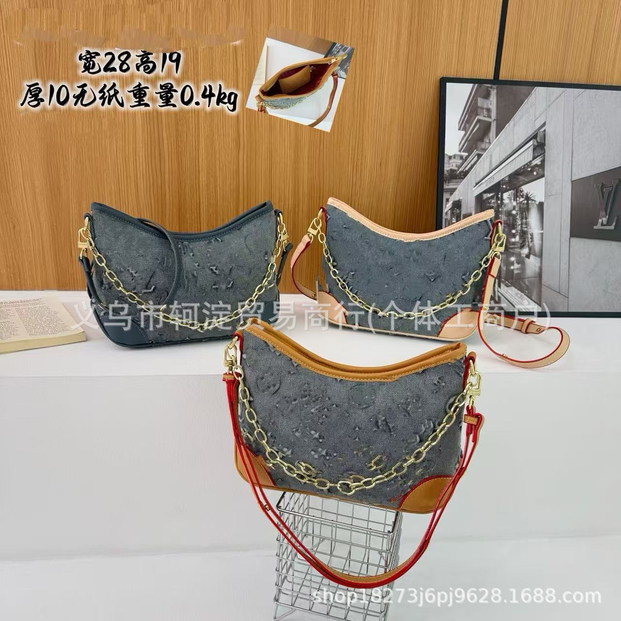 跨境批发2025新款潮牌老花女包法棍包牛角包复古腋下包发财桶女包