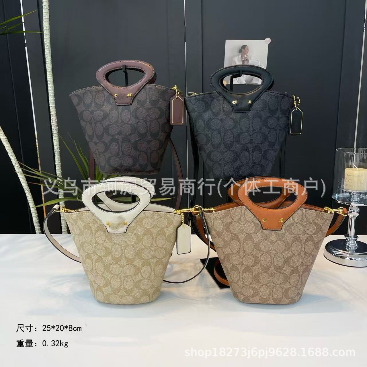 蔻家女士水桶包2025C家复古老花单肩菜篮子包时尚潮流斜跨手提包