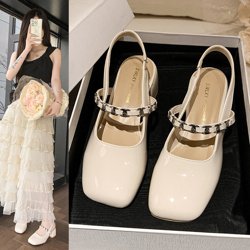 网红同款法式气质玛丽珍凉鞋爆款粗跟包头凉鞋2025夏季新款高跟鞋