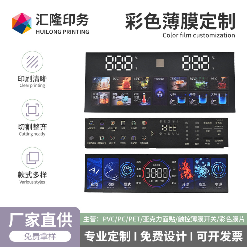 定制薄膜面板丝印PC彩色家用电器防水背胶pp彩色面贴数码触控开关