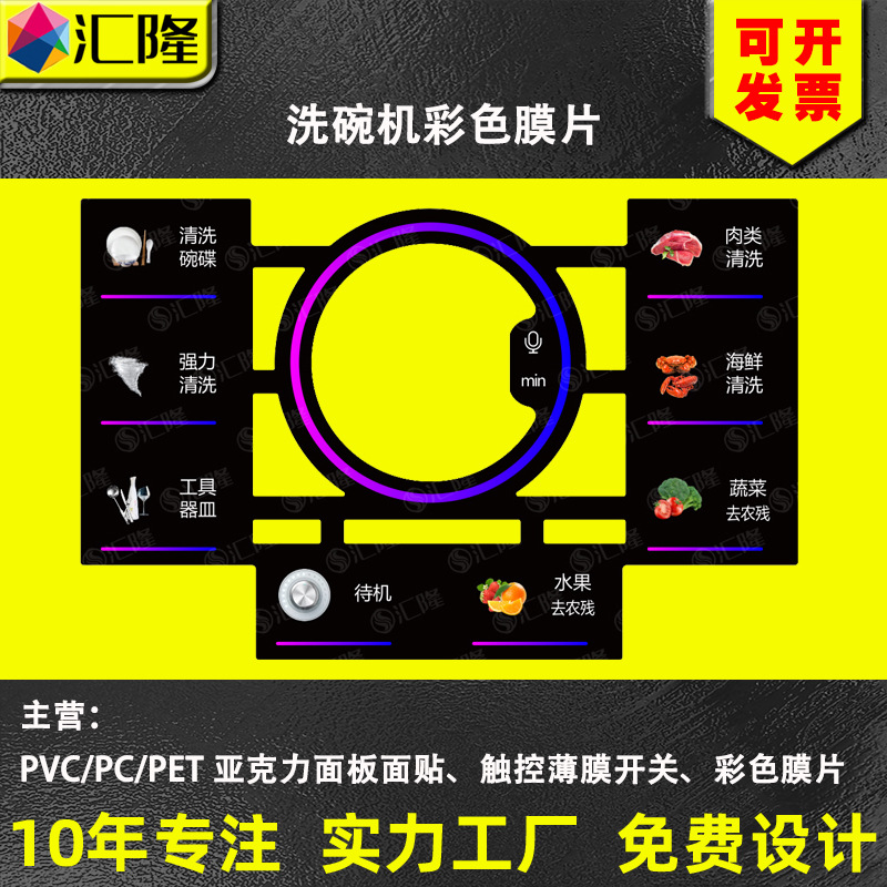 免费设计家用电器面板彩色触控柔性薄膜开关洗碗机磨砂pet扩散膜