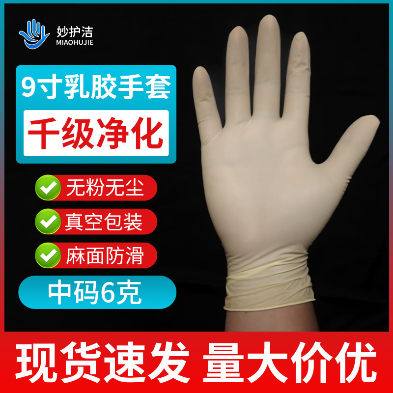 净化无粉无尘乳胶手套现货批发9寸12寸千级车间用加厚橡胶手套