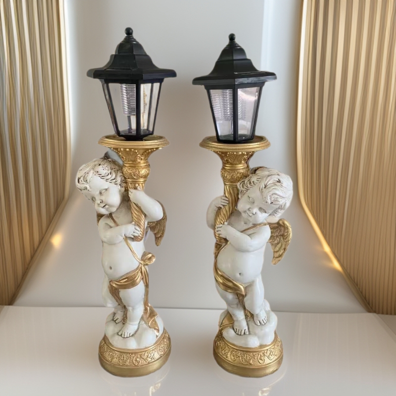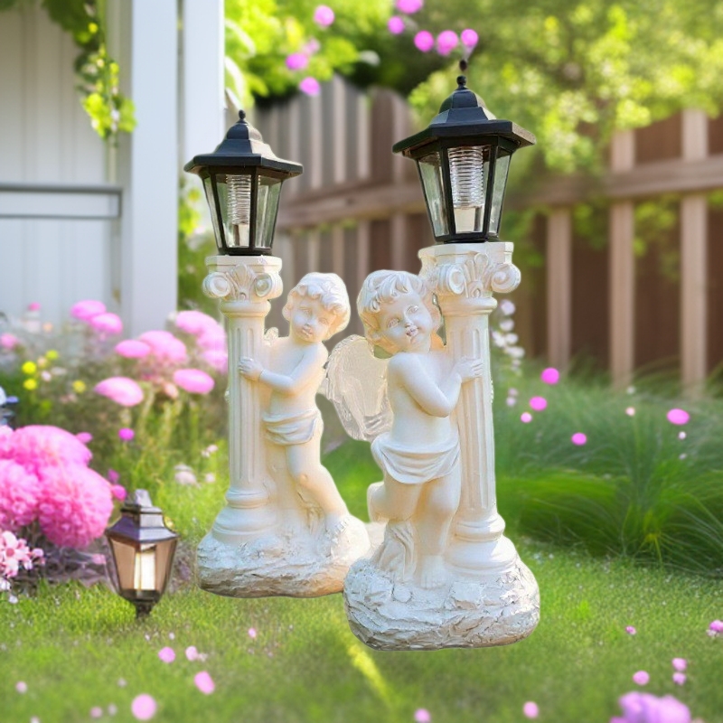 亚马逊太阳能灯雕像树脂天使花园庭院摆件创意庭院夜景装饰门庭灯