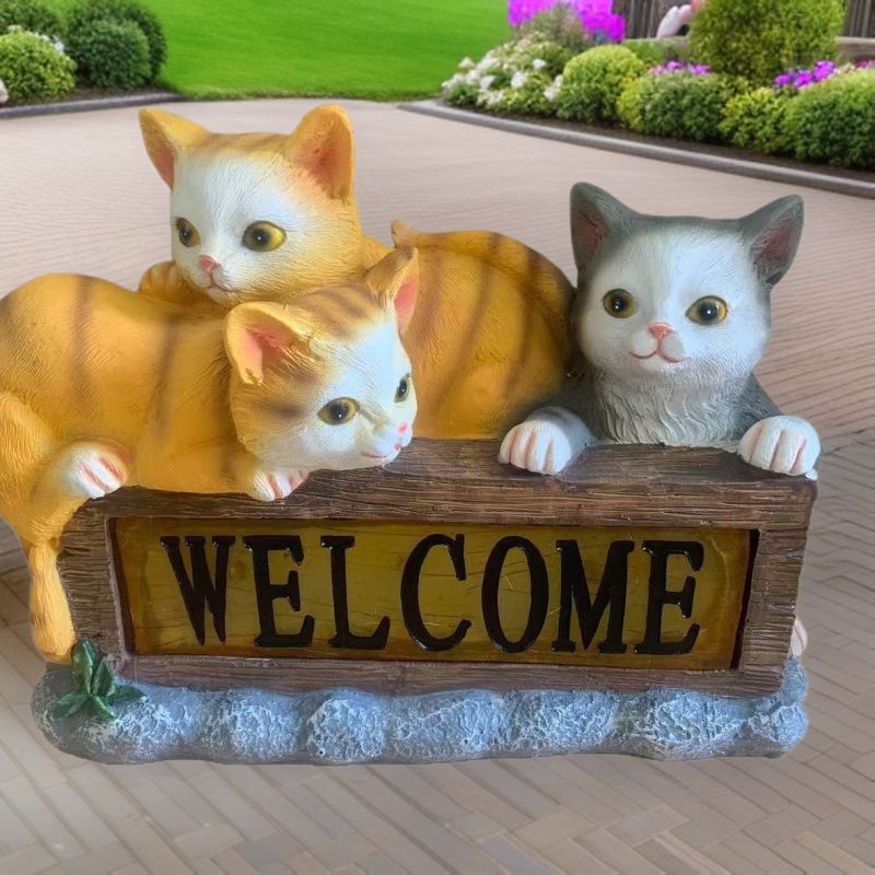 太阳能三只猫咪欢迎回家花园庭院露台露营庭院花园led灯太阳能灯