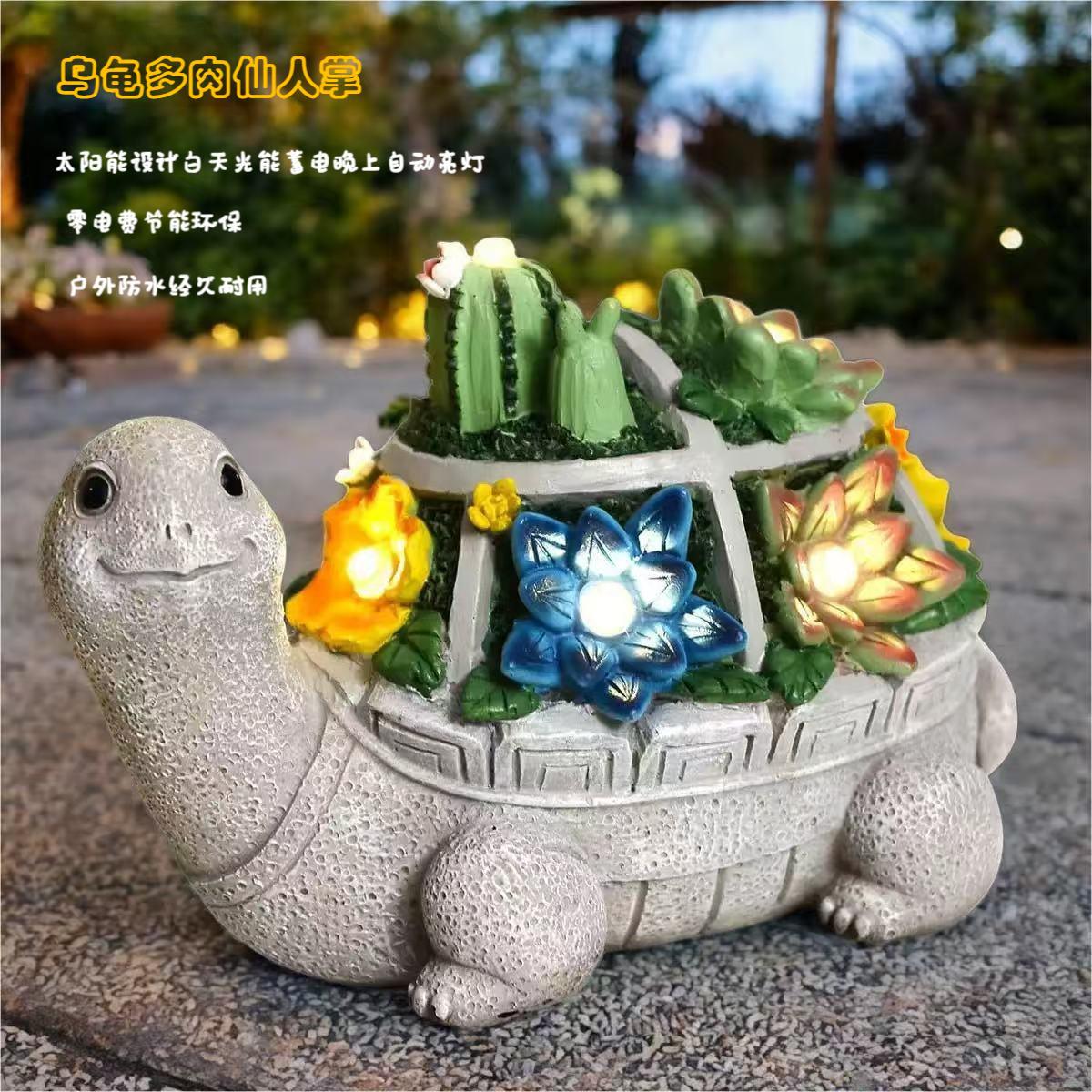 新款太阳能乌龟动物草坪灯庭院花园露台露营景观夜光
