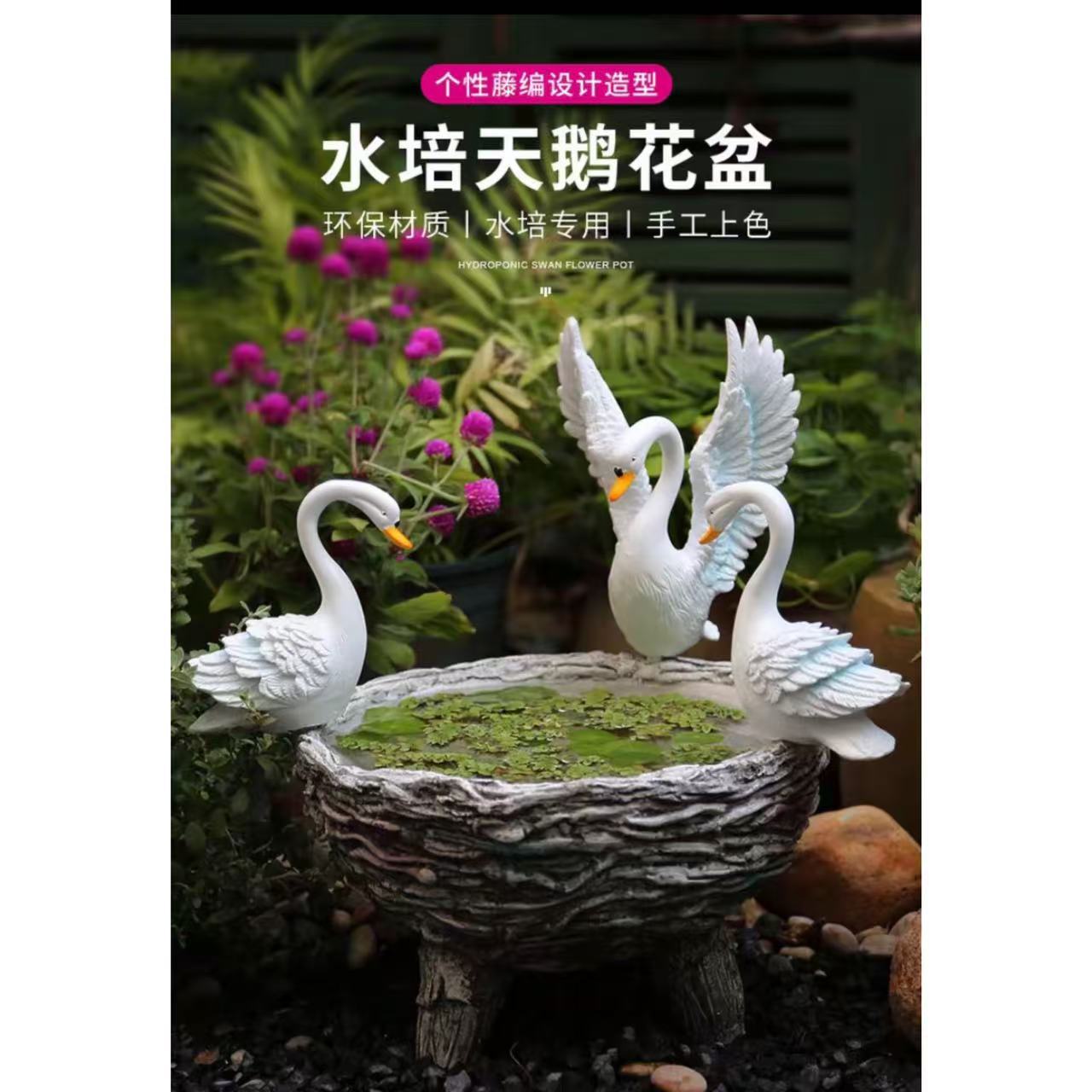 创意阳台装饰可爱天鹅园林水培花盆景庭院花园树脂摆件微景观