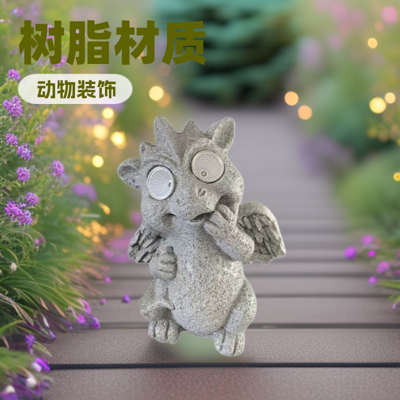 跨境新款太阳能灯动物树脂工艺品装饰花园摆件阳台田园庭院灯