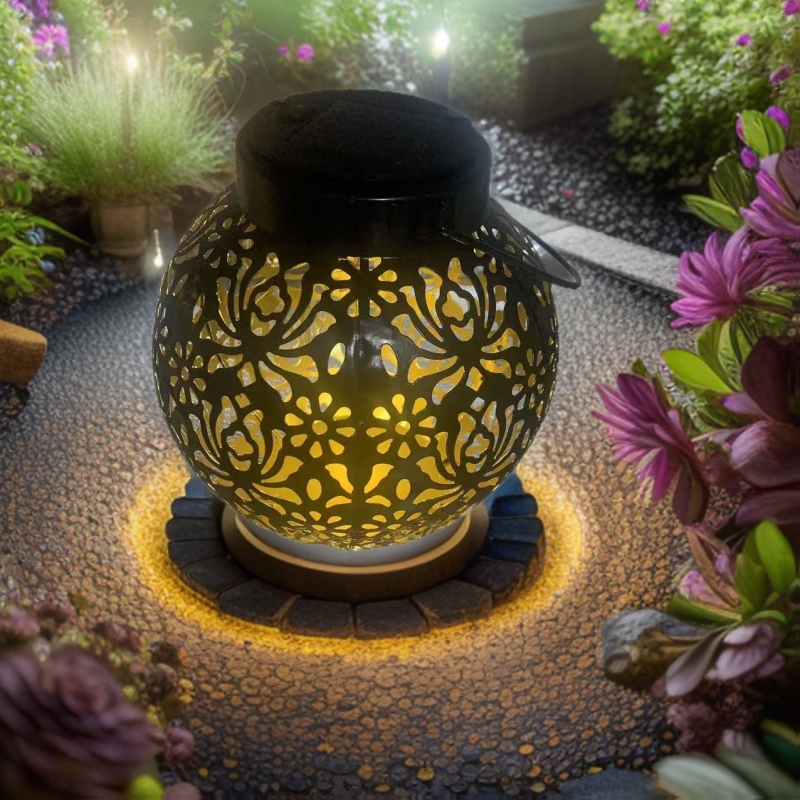 太阳能铁艺镂空庭院灯悬挂投射篱笆景观花园草坪灯投影