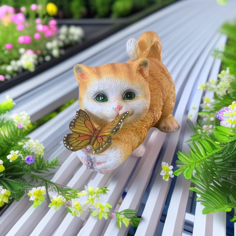 跨境led灯工厂直销树脂小猫太阳能灯工艺品户外花园庭院装饰萌宠
