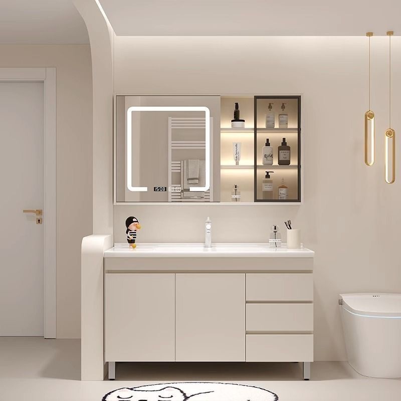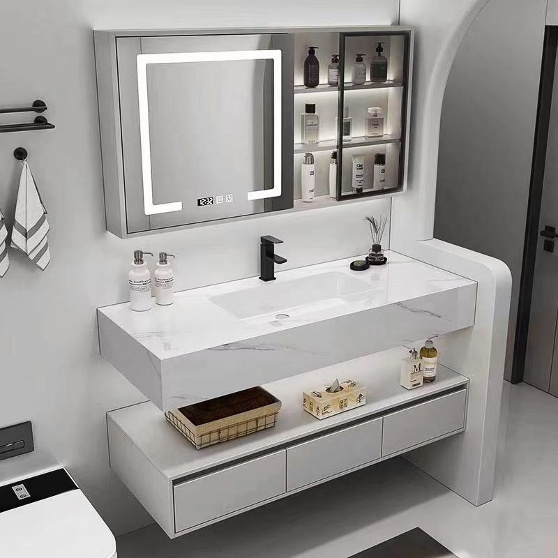 现代简约轻奢岩板无缝拼接陶瓷一体盆多层实木卫生间浴室柜洗脸盆