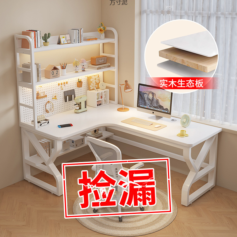 实木转角电脑桌双人台式家用拐角式书桌收纳实木书桌L型一体桌厂