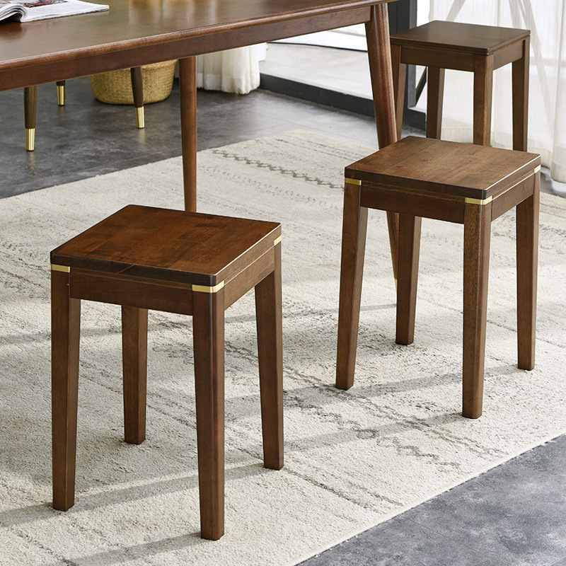 家用实木凳子客厅可叠放餐凳板凳新中式铜素方凳高凳子简约餐椅