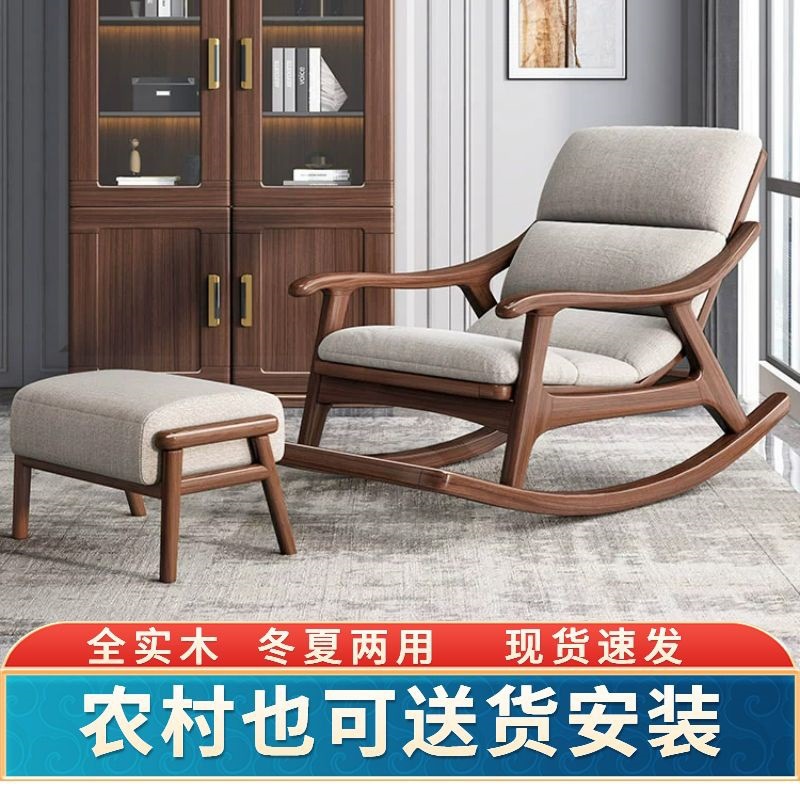 新中式摇摇椅实木胡桃摇椅大人躺椅阳台家用休闲客厅懒人舒适慢摇