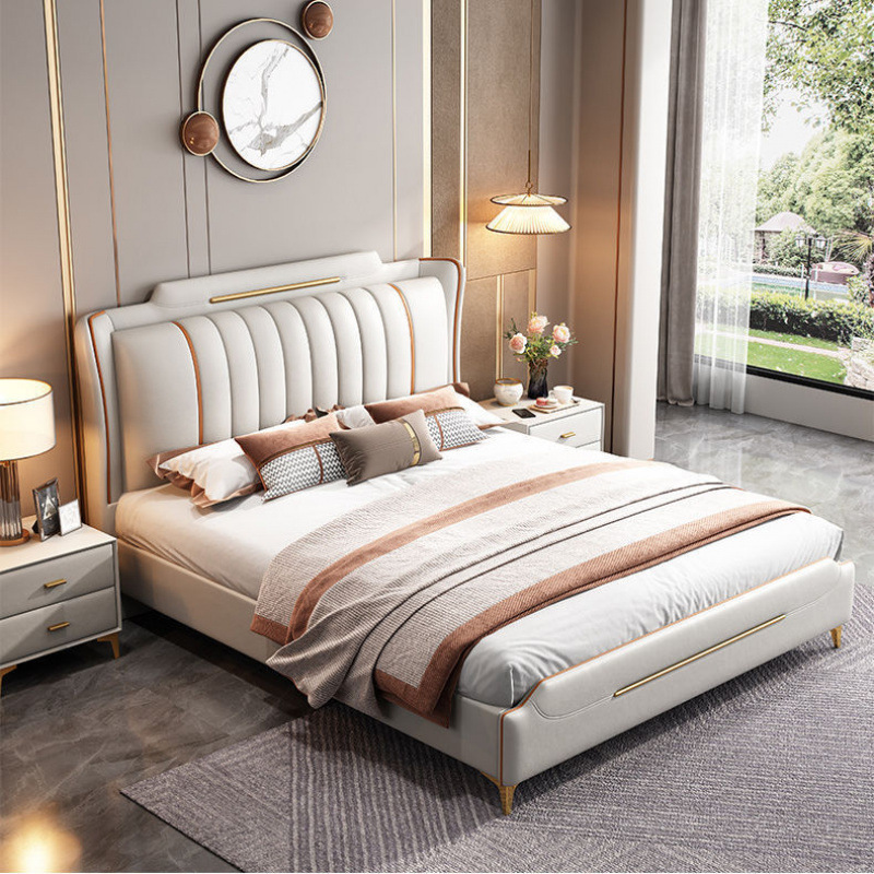 意式轻奢高级感1米8主卧室双人床1.5极简高端大气现代真皮艺大床