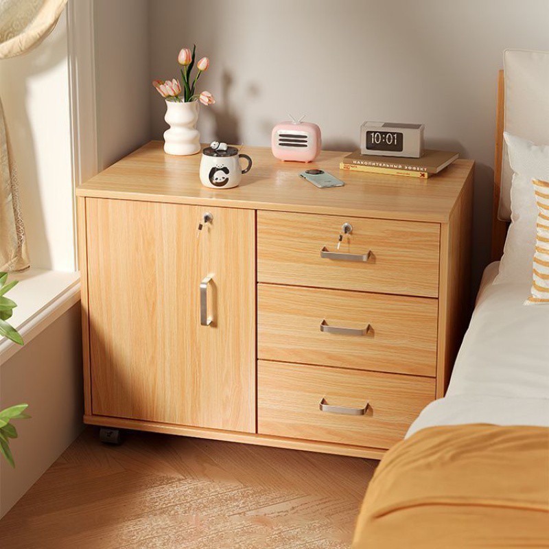 带锁床头柜子储物柜大尺寸简约现代收纳柜家用卧室简易床边置物柜