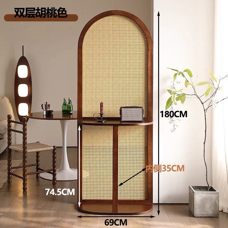 中式藤编屏风隔断客厅玄关实木折叠小户型遮挡入户简约