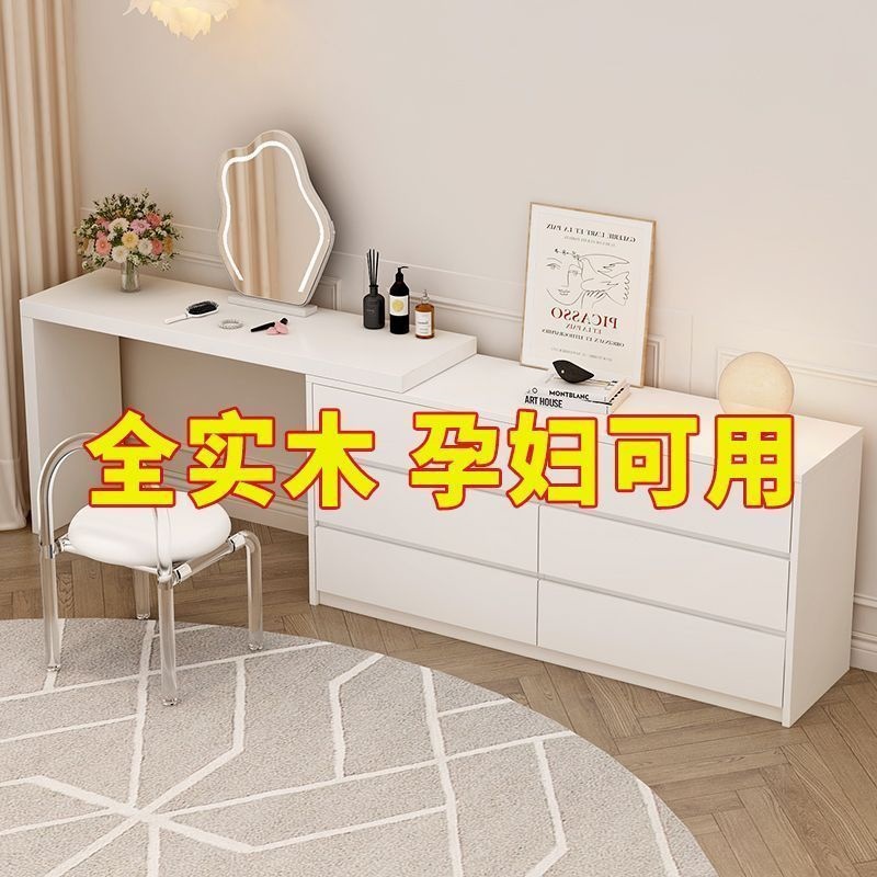 【实木】梳妆台卧室现代简约斗柜一体梳妆柜小型床柜可伸缩化妆桌