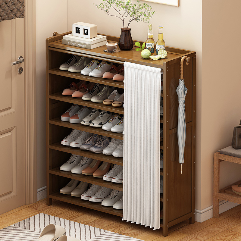 简约防尘鞋柜一体柜多层楠竹鞋架家用门口鞋橱入户收纳玄关隔断柜